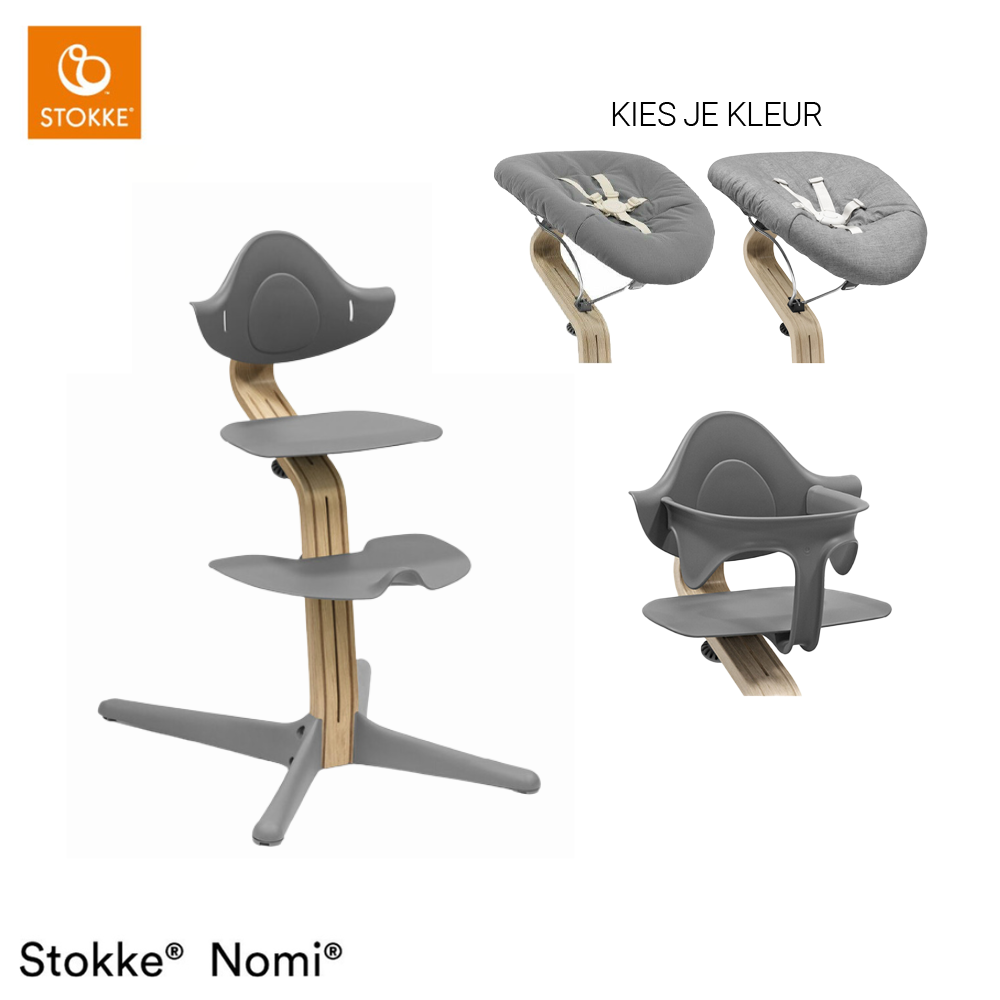 Kinderstoel Stokke® Nomi Grey/Oak incl. Newbornset en + GRATIS Babyset