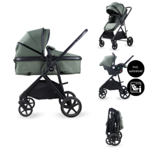Kinderwagen Novi Baby® Jaxx V2 3-in-1 Green Melange met Autostoel