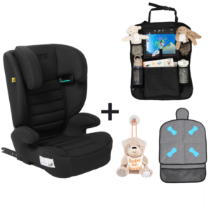Set |Novi Baby® James Premium i-Size Isofix All Black met Organizer, Stoelbeschermer en Baby on Board Knuffel