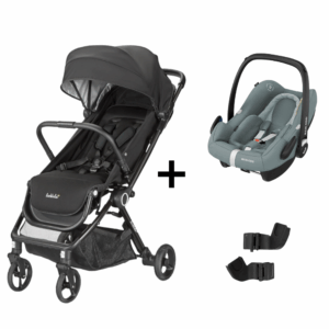 Maxi-Taxi Larktale Autofold Byron Black met Maxi-Cosi Rock Essential Grey&Adapterset