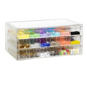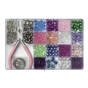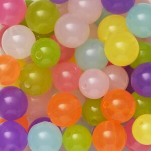 Kralenmix met witte, ronde, parelmoerachtige acrylkralen. Afmeting: doorsnede 3-12 mm, gat± 1-2 mm. Wordt geleverd in een praktische opbergdoos (9x12x2