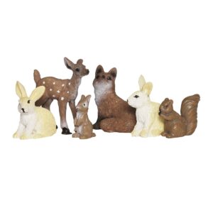 Kleine bosdiertjes van polyresin (mix tussen steenpoeder en giethars). De beestjes zijn gedetailleerd, levensecht en erg schattig. Ideaal als decoratie