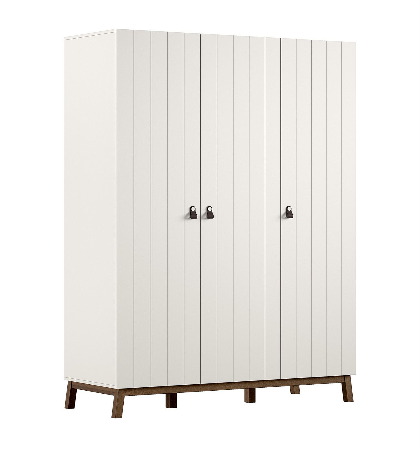 3-deurs Kast Jaxx SezaneKast Sezane van Jaxx is ideaal voor alle kleding van jouw kindje. Door de zes legplanken en een kledingroede is er zeker genoeg ruimte om alle kleding in op te bergen. De kast heeft een zachte klei kleur, afgewerkt met walnoothouten details en lederen handgrepen. De kast is voorzien van soft-close, zo kan je geruisloos de kleding voor jouw kindje pakken. Is de kast toch een maatje te groot voor je? De kast is ook verkrijgbaar in een 2-deurs variant. EigenschappenMerk: VipackAfmetingen: 196 x 58 x 149 cm (HxBxL)Materiaal: Massief grenen&MDFMet 8 legplanken en 2 kledingroedesMet lederen handgrepenMet soft-close