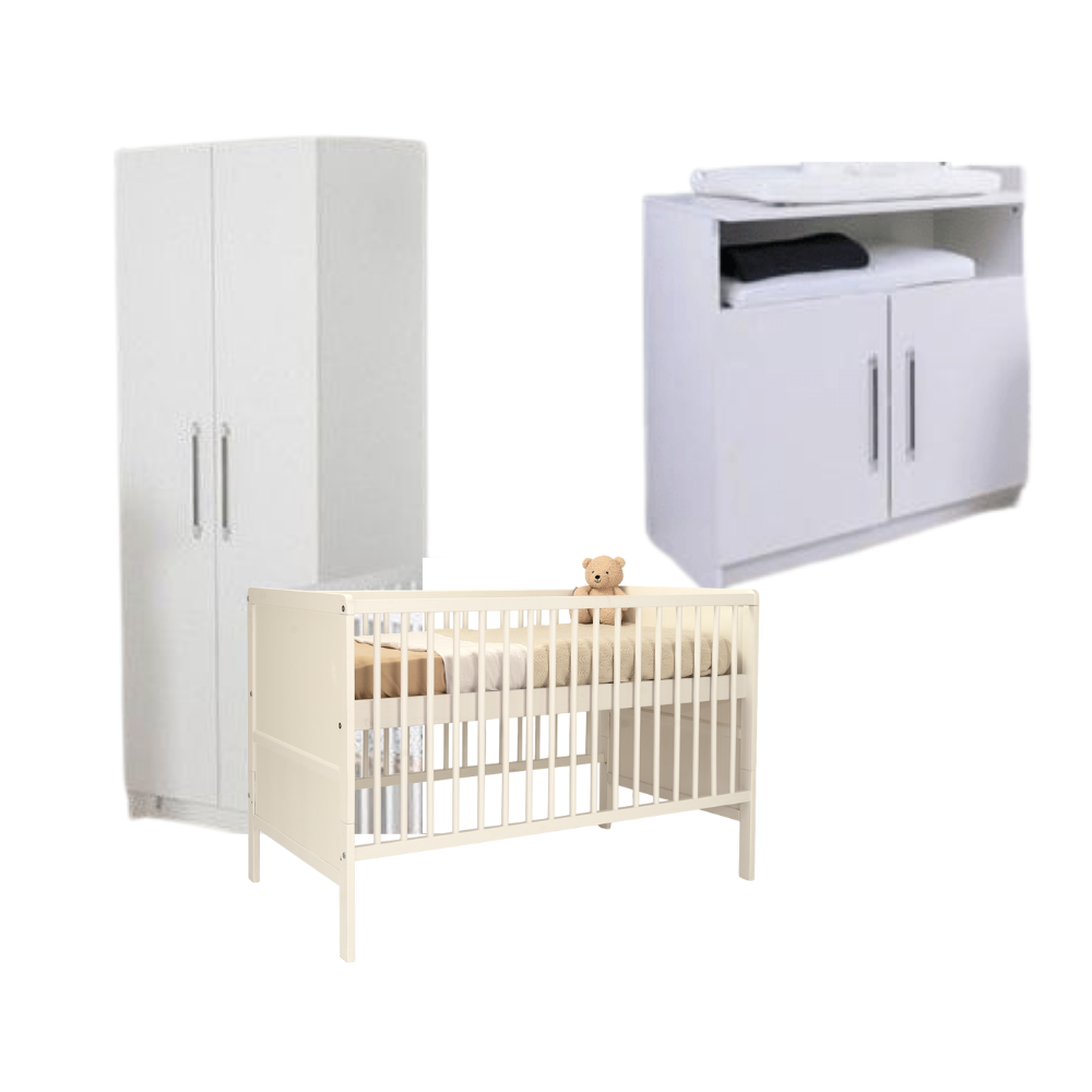 Babykamer Tess met Meegroeiledikant Luca Meegroeiledikant Dit veelzijdige bedje van Colorfull Home groeit mee met je kindje en biedt jarenlang slaapcomfort. In de eerste fase gebruik je het als knus en veilig ledikant. Zodra je kindje groter wordt, pas je het bed eenvoudig aan: als je de spijlen aan de zijkanten en aan beide kanten het onderste gedeelte van het hoofdeinde en voeteinde demonteert, krijg je een bedje van 60×120 cm. Daarmee ontstaat een peuterbedje dat perfect aansluit op de nieuwe slaapbehoeften van je kind. Dankzij de doordachte constructie gaat dit bedje jarenlang mee en combineert het veiligheid, functionaliteit en comfort inéén stijlvol ontwerp. Commode Commode Tess is gemaakt van meubelplaat met gefolied wit. De commode is voorzien van opbergvak en twee deurtjes met daarachter nog meer opbergruimte. Kast Kast Tess is gemaakt van meubelplaat met gefolied wit. Deze strakke en moderne kast bestaat uit een legplanken een roede over de volledige breedte. Eigenschappen Meegroeiledikant Merk: Colorfull Home Matrasafmeting: 60×120 Om te bouwen van ledikant naar peuterbed Verwijderbare spijlen en hoofd- en voeteneinde Commode Merk: Colorfull Home Afmetingen: 90 x 50 x 92 cm (B x D x H) Kast Merk: Colorfull Home Afmetingen: 52 cm x 70 cm x 180 cm (D x B x H)