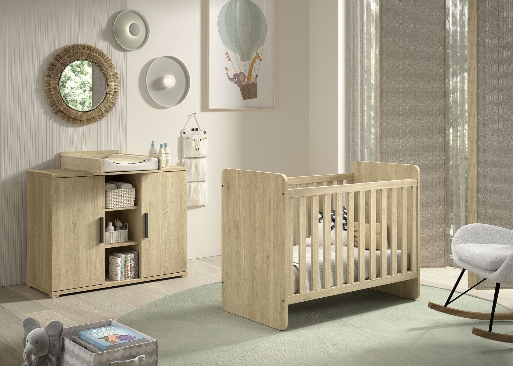 Babykamer Sam Eik (Meegroeiledikant + Commode)