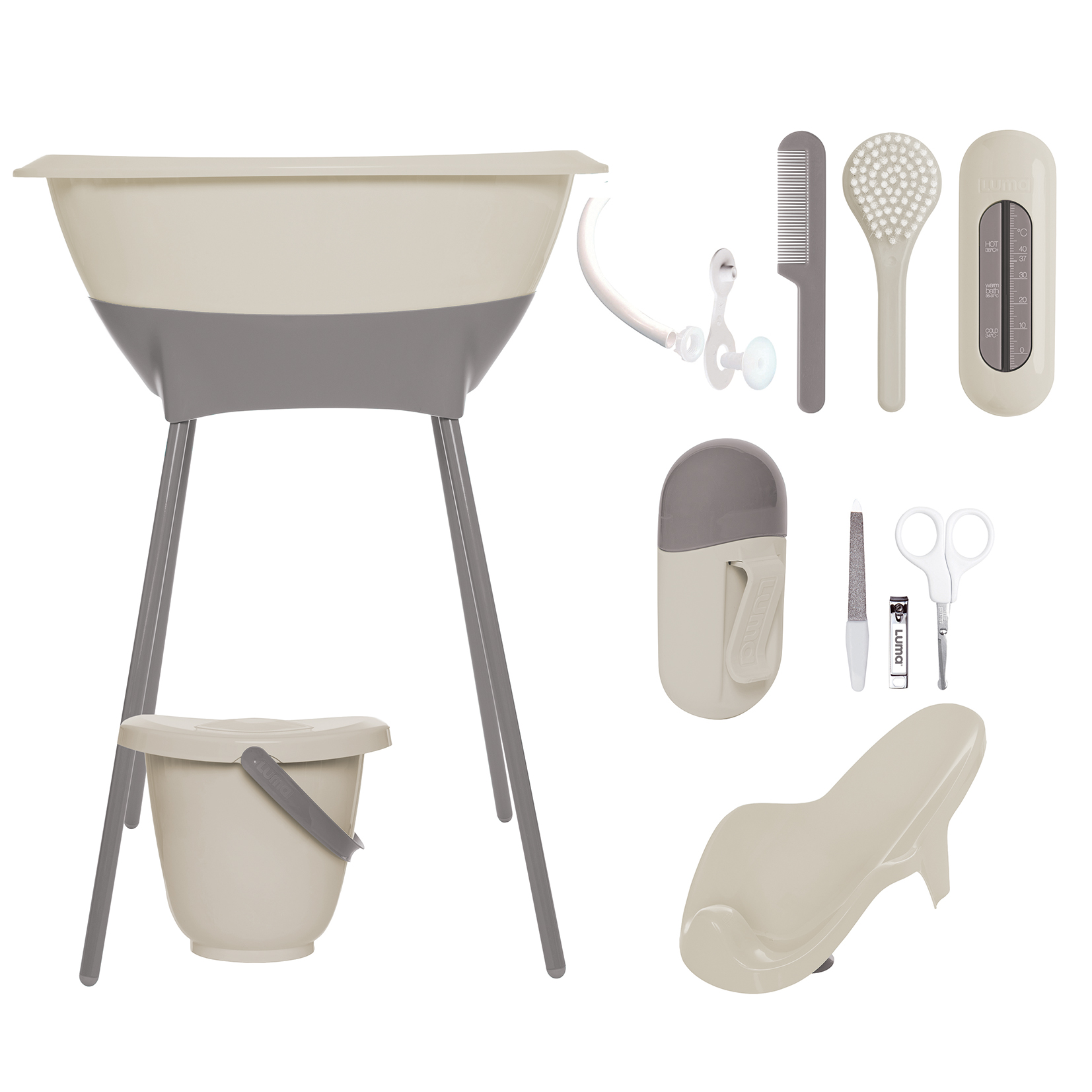 Bad&Verzorgingsset LumaOntdek de Luma bad&verzorgingsset– de perfecte start voor elke kersverse ouder! Deze complete en stijlvolle set maakt van elk badmoment een feestje, geschikt vanaf de geboorte tot circa 24 maanden. Alles wat je nodig hebt, zit erbij: het babybadje heeft een comfortabele vorm waarin je kleintje heerlijk kan spetteren, terwijl de stevige badstandaard zorgt voor een fijne werkhoogte zodat jij ontspannen kunt genieten. Voor de allerkleinsten biedt de badinzet extra steun en veiligheid tijdens de eerste weken.De praktische luieremmer houdt nare geurtjes tegen en is superhandig voor watergebruik. Met de manicureset knip en vijl je moeiteloos mini-nageltjes, en de zachte kam en borstel verzorgen het tere babyhaar zonder te trekken. Dankzij de badthermometer weet je zeker dat het water altijd precies goed is. En met de badslang is het badje in een handomdraai leeg – wel zo makkelijk!De bad&verzorgingsset van Luma is verkrijgbaar in trendy kleurencombinaties, perfect passend in elke babykamer of badkamer. Een prachtige, praktischeén stijlvolle must-have voor elke ouder! EigenschappenMerk: LumaGeschikt vanaf de geboorte tot circa. 24 maandenAfmetingen bad: 75 x 39 x 25 cmAfmetingen badstandaard: 78 x 32 x 16.5 cmComplete badset met alle essentiële benodigdheden voor de dagelijkse verzorging van je kleintjeInhoud set: Babybadje, badstandaard, luieremmer, badinzet, manicureset, kam, borstel, badthermometer en badslang.Verkrijgbaar in verschillende kleurencombinaties