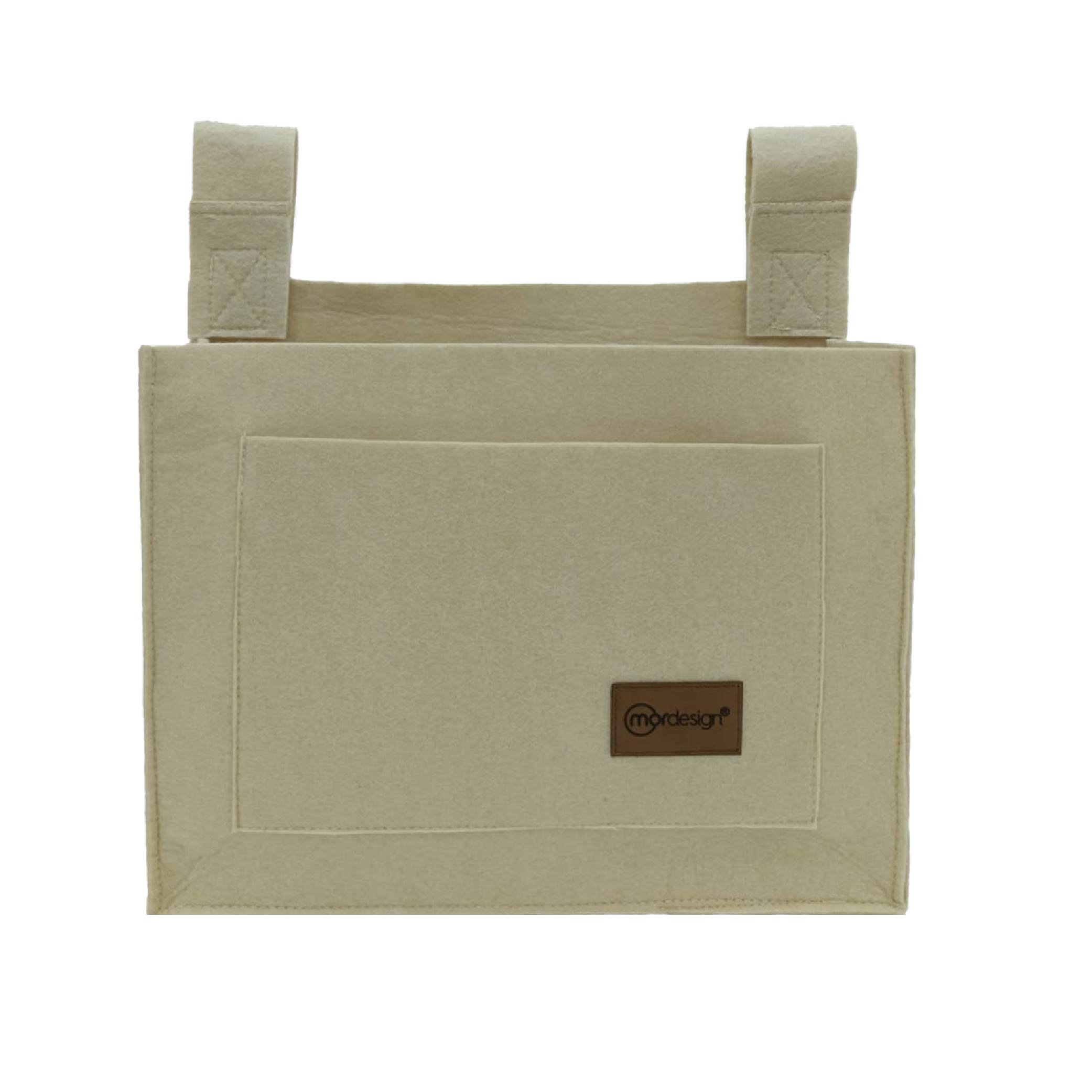 Boxzak MorDesignMet deze handige boxzak van het merk MorDesign kan je makkelijk spullen opbergen die je veel nodig hebt. De boxzak is door middel van stevig klittenband aan de box te bevestigen. De boxzak kan natuurlijk ook aan een ledikant bevestigd worden. De boxzak heeftéén groot vak en een kleiner vak. De opbergzak is gemaakt van vilt, dit materiaal is niet alleen stevig maar blijft ook lang mooi. EigenschappenMorDesignMateriaal: ViltTe bevestigen met klittenbandMet meerdere vakken