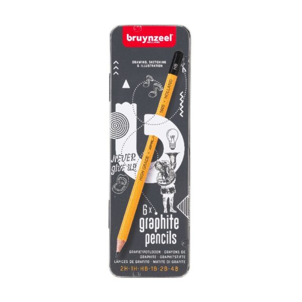6 Bruynzeel Teens grafietpotloden in handig bewaarblik. 6 verschillende hardheden: 2H, 1H, HB, 1B, 2B en 4B. Over de Bruynzeel Teens lijn: Speciaal ontwikkelde lijn voor de scholier en de student. Het is een compleet assortiment met alle teken-, kleur- en schrijfproducten die nodig zijn tijdens de les. Van kleurpotlood en passer tot viltstiften en puntenslijpers. Alle Teens producten passen makkelijk in de rugtas. Bruynzeel: Trotse supporter van ieders verbeelding sinds 1948! Zij waren erbij, binnen handbereik, toen je je eerste lijn tekende. De eerste van vele. Die lijnen werden ideeƫn, en die ideeƫn werden tekeningen. Zij geloven dat elke tekening uitdrukking geeft aan een idee dat de moeite waard is om te delen. Dus deel zo veel je wilt! Bruynzeel: trotse supporter van ieders verbeelding sinds 1948.