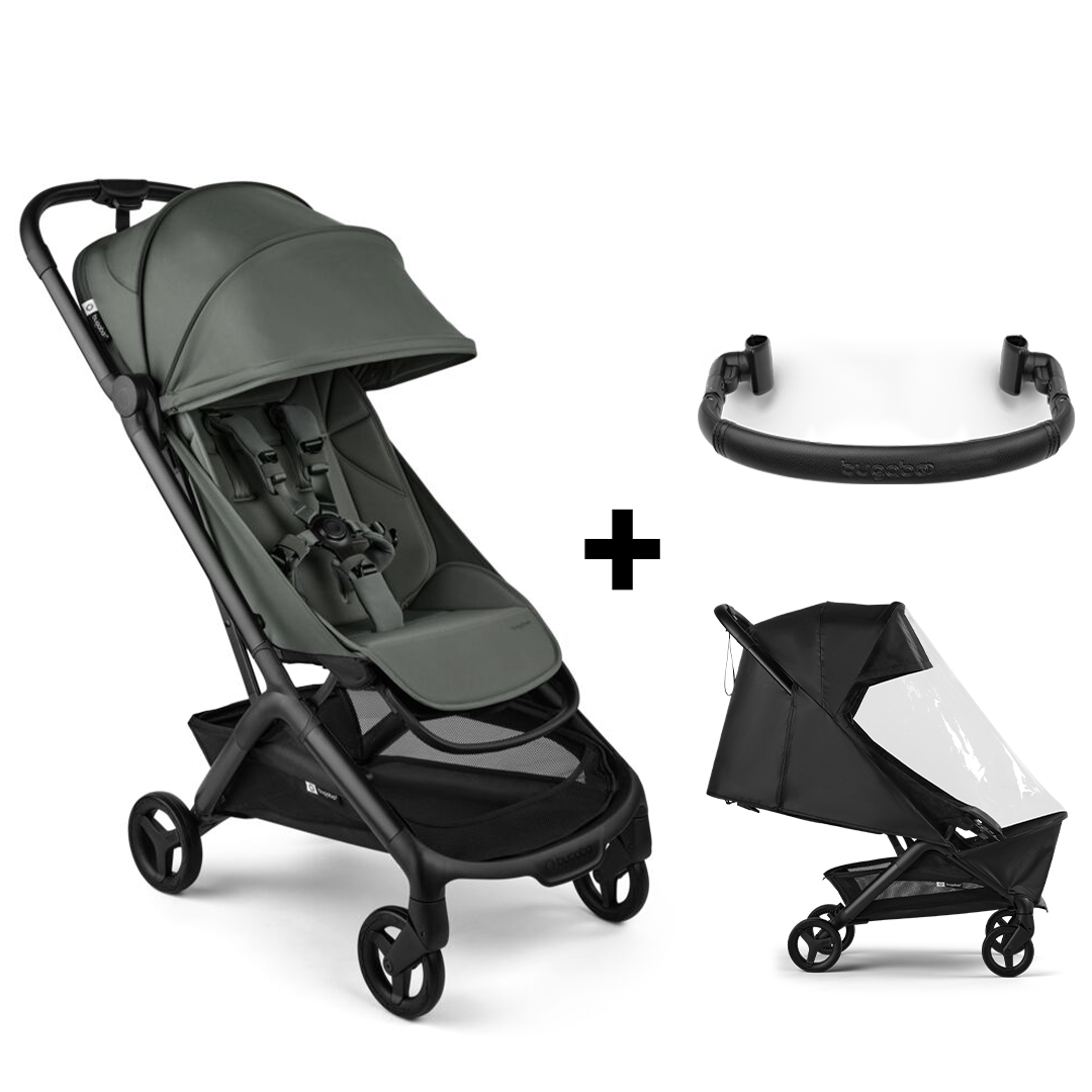 Buggy Bugaboo Butterfly 2 Complete Black/Forest Green Met Veiligheidsbeugel En Regenhoes