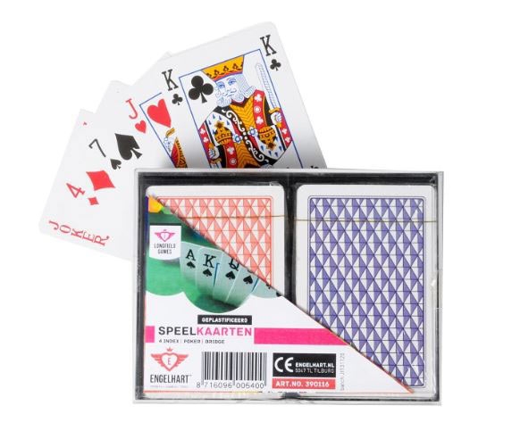 Geplastificeerde Speelkaarten (blauw + rood) – Engelhart Kaartspel