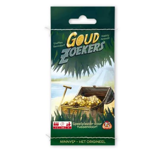 Goudzoekers is een klein en makkelijk te leren spelletje waarin je schatten verzamelt.In het spelletje Goudzoekers zwerf je rond op een eiland. Kom je bij een tempel of schatkist, dan zal de dobbelsteen je belonen of vervloeken. Door meer uitrusting te verzamelen, verhoog je je kansen op goud.Het resultaat van de dobbelsteen bepaalt hoeveel velden de spelers mogen verplaatsen. Stippel je route zorgvuldig uit!Inhoud spelletje Goudzoekers:- 1 scoreblok,- 1 potlood,- 1 dobbelsteen,- spelregels.Goudzoekers is een spel van de reeks Minnys van White Goblin Games. Minnys zijn korte, compacte spelletjes met eenvoudige spelregels.