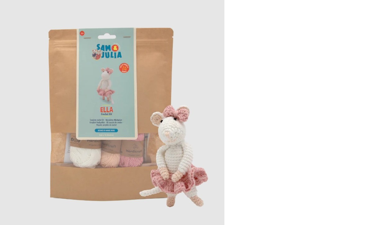 Breng de verhalen van Het Muizenhuis tot leven met zelfgehaakt knuffeltje Ella. Speel de avonturen uit de boeken na of bedenk je eigen verhalen met de zachte knuffelmuisjes. Perfect om mee te spelenén te knuffelen. De Muizenhuis-familie groeit nog altijd… ontmoet ze allemaal! Dit pakket bevat een patroon, kwaliteitsgaren van 100% biologisch katoen ende meeste fournituren die nodig zijn om aan het werk te gaan. Ella wordt ongeveer 12 cm hoog. Inhoud: * 100% katoenen garen in de kleuren grijs (25 g), roze (10 g) en lichtroze (10 g) * Restje zwart draad * Patroon (NL, EN, DE, FR&ES) * Vulling * Zwarte kralen * Naainaald en stopnaald Let op! Exclusief haaknaald (2,5 mm).