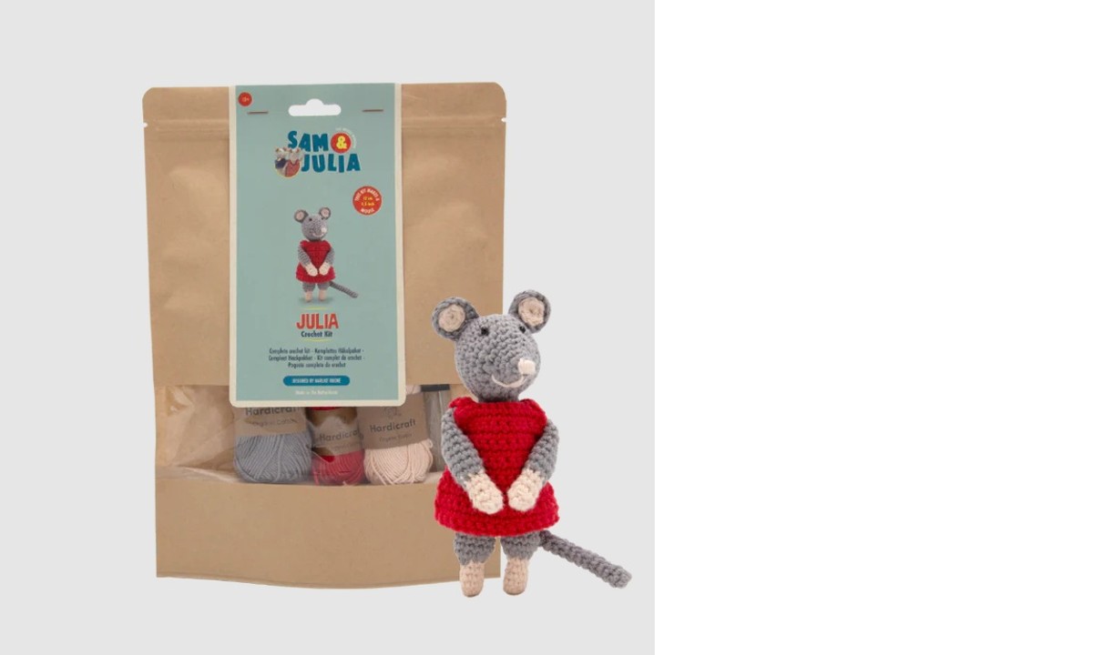 Breng de verhalen van Het Muizenhuis tot leven met zelfgehaakt knuffeltje Julia. Speel de avonturen uit de boeken na of bedenk je eigen verhalen met de zachte knuffelmuisjes. Perfect om mee te spelenén te knuffelen. De Muizenhuis-familie groeit nog altijd; ontmoet ze allemaal! Dit pakket bevat een patroon, kwaliteitsgaren van 100% biologisch katoen en de meeste fournituren die nodig zijn om aan het werk te gaan. Julia wordt ongeveer 12 cm hoog. Inhoud: * 100% katoenen garen in de kleurengrijs (25 g), rood (10 g) en lichtroze (10 g) * Restje zwart draad * Patroon (NL, EN, DE, FR&ES) * Vulling * Zwarte kralen * Naainaald en stopnaald Let op! Exclusief haaknaald (2,5 mm).