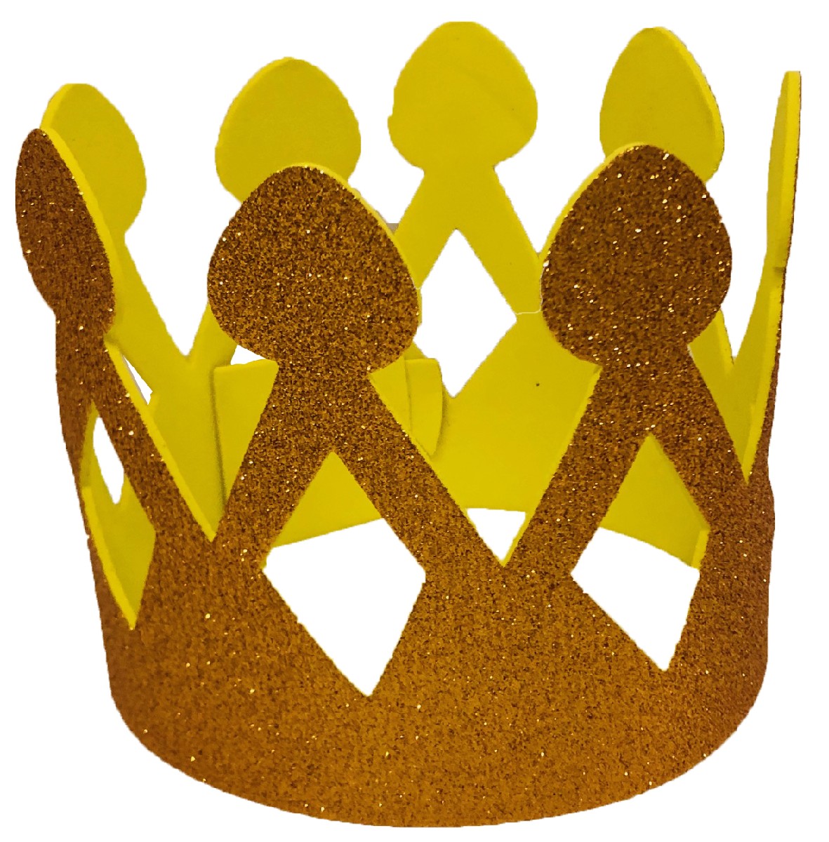 Kroon van decoratief rubber. Geschikt voor alle kleine koningen, koninginnen en speelse kinderen. Feestelijk mooi en geweldig op zichzelf, maar je kunt hem ook versieren naar eigen smaak. Goud en glinsterend. Afmeting: hoogte 14,5 cm, lengte 57 cm.