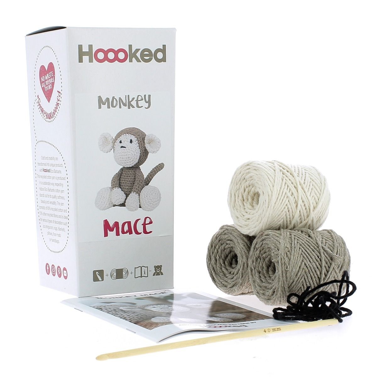 Maak kennis met het gehaakte aapje Mace, gemaakt met Eco barbante garen. Eco barbante is een superzacht recycle katoengaren van Hoooked en hierdoor perfect voor het haken van amigurumi knuffels! Het haakpakket staat garant voor uren haakplezier met als resultaat een lieve knuffel voor jezelf of om cadeau te geven. De kit bevat: * 3 bollen Eco Barbante 50 gram (2x taupe, 1x almond) * Restje zwart Eco Barbante * 1 bamboe haaknaald 4 mm * Haakpatroon Het enige dat je zelf nog toe moet voegen is een beetje vulling. Over Hoooked: Recyclen en creëren sinds 2008. Het Hoooked verhaal gaat niet alleen over leuke kleurrijke garens, maar ook over het aanpakken van het afval van de mode-industrie door dit te gebruiken voor nieuwe garens. De filosofie van Hoooked is om deze overtollige textielresten op een stijlvolle manier te hergebruiken en bijte dragen tot duurzame werkgelegenheid in Europa, in plaats van de productie naar elders te verplaatsen of uit te besteden. Hoooked was het