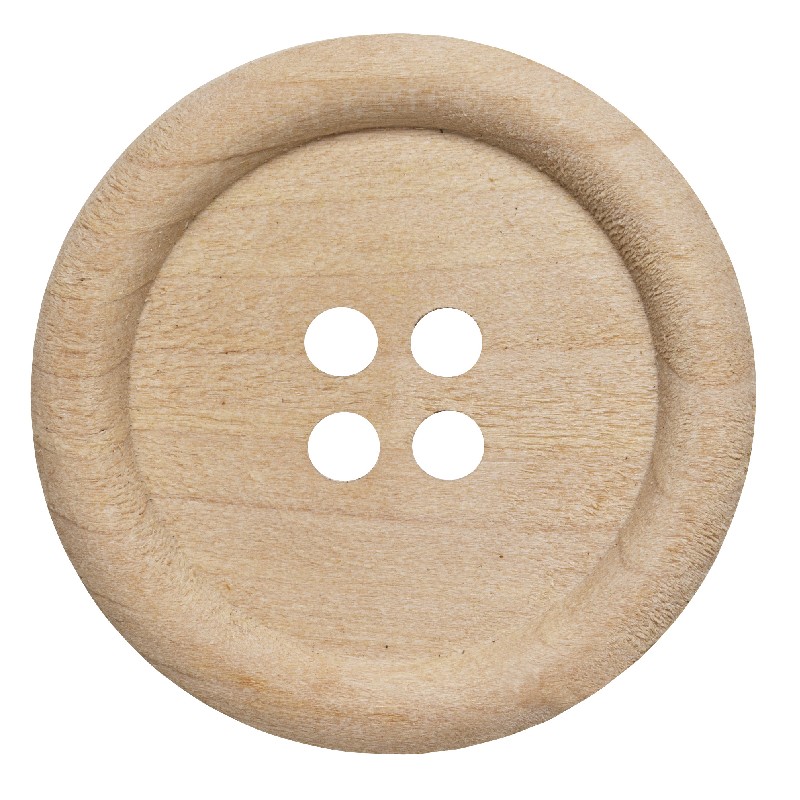 Knopen van onbehandeld hout. Met vier gaten om zelf vast te naaien. Kleding met houten knopen alleen met de hand wassen. Inhoud: 6 stuks, doorsnede35 mm.