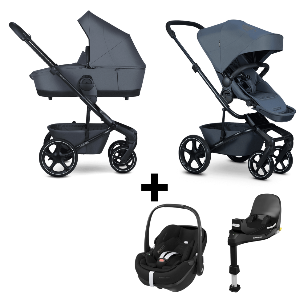 Kinderwagen Easywalker Harvey NXT De iconische Harvey kinderwagen van Easywalker is in een nieuw jasje gestoken, de Harvey NXT! Deze kinderwagen is van alle gemakken voorzien en is voorzien van de prettigste details. Niet alleen een fijne kinderwagen voor jezelf en je kindje, maar ook een duurzame keuze, de kinderwagen is namelijk gemaakt van gerecyclede PET-flessen. Met de Easywalker Harvey NXT ben je klaar voor elk avontuur, op allerlei terreinen. Je koopt de kinderwagen compleet met frame, reiswieg en wandelwagenzitting maar dat niet alleen. Ook een handig accessoirepakket met hoogte adapters, autostoel adapters en regenhoes is inbegrepen. Een complete kinderwagen, die de wandelingen in zowel de stad als het bos zeer aangenaam maakt. Toch nog op zoek naar meer vering in de kinderwagen? Schaf een extra luchtwielen set aan en je bent klaar voor de ruwere terreinen. De reiswieg is geschikt vanaf dagéén tot ongeveer 6 maanden. De reiswieg komt inclusief luxe gevoerd matrasje van biologisch katoen. Daarnaast kan het matrasje ook in een anti-reflux stand gezet worden. De reiswieg heeft veel ventilatiemogelijkheden, ideaal voor de warme zomerdagen. Zowel in de reiswieg als in de UPF 50 zonnekapzijn grote ventilatieroosters aanwezig. Ook kan de zonnekap door middel van een rits verlengd worden. Jouw kindje zal hierdoor zeker geen last hebben van de felle zon of harde wind. Na ongeveer 6 maanden of wanneer je kindje goed zelfstandig kan blijven zitten, is het tijd voor de wandelwagenzitting. Deze kan gebruikt worden tot 22 KG. De zitting is beide kanten op te plaatsen, je kindje kan fijn naar jou kijken of de wereld om zich heen ontdekken. De rugleuning is verstelbaar in 3 standen, van volledig rechtop tot helemaal liggend, zo kan je kindje ook een dutje doen in de kinderwagen. De zitting is uitgerust met een magnetisch 5-puntsharnas en heeft een veiligheidsbeugel. Hebben jij een je partner een lengteverschil? Geen enkel probleem, de duwstang is gemakkelijk in hoogte te verstellen. Het inklappen van het frame is heel makkelijk en kan zelfs met de zitting erop. De boodschappenmand is ruim en er kan tot 10 KG aan spullen in. De voor-en achterwielen zijn voorzien van vering en de voorwielen hebben een zwenkstand. Naast dat de Easywalker Harvey NXT te gebruiken is voor een kindje, kan deze kinderwagen ook uitgebreid worden naar een duo of zelfs twin kinderwagen. Hiervoor dient de extensie set voor het frame en een uitbreidingsset in de gewenste kleur aangeschaft te worden. Let op! We gebruiken verschillende beelden ter verduidelijking van het product. Op deze afbeeldingen kan de kleur afwijken van het product. Autostoel Pebble Pro2 Vanaf de allereerste dag geeft deMaxi-Cosi Pebble 360° Pro2 prioriteit aan de veiligheid en het comfort van je baby. De Pro2 is namelijk voorzien van een open mesh-stof voor een perfecte luchtcirculatie. In combinatie met al zijn pluspunten ontwikkeld Maxi-Cosi toch een autostoel die ook nog is aan de aller strengste I_size veiligheidsnormen voldoet. De Maxi-Cosi Pebble 360° Pro2 past op de FamilyFix 360° Pro Base (apart verkrijgbaar), waardoor het de ultieme oplossing is voor je pasgeboren baby. Je kunt moeiteloos de autostoel met één hand draaien én dankzij de nieuwe innovatieve SlideTech™ techniek de autostoel ook naar je toe schuiven. Dat betekent voor jou als ouder dus geen worstelingen, rugpijn of hoofdstoten meer, ideaal dus voor iedere ouder! Het installeren van de Maxi-Cosi Pebble 360° Pro2 is een’fluitje van een cent’, dankzij de FamilyFix 360° Pro draai- en schuifbare basis. Deze bevestig je aan de IsoFix punten in je auto. Zonder de base kun je uiteraard de autostoel Pebble ook bevestigen met behulp van de autogordels. Wanneer je jouw kindje in de auto zet, moet dat zachtjes en comfortabel gebeuren. Dankzij de praktische gordel vande Maxi-Cosi Pebble 360° Pro2 kun je jouw baby snel en probleemloos erin en eruit tillen. De super comfortabele Baby-Hugg zitverkleiner houdt je kindje ten alle tijde knus op zijn/haar plaats en biedt extra ondersteuning. Om de veiligheid en het comfort van je kindje te garanderen, beschikt de Pebble Pro2 autostoel over een ClimaFlow bekleding. Deze stof helpt om de temperatuur van je baby te reguleren. Daarbij beschermt de G-CELL technologie tegen de krachten bij een zijdelingse botsing. Het ontwerp en de productie van de innovatie en ongeëvenaarde Pebble 360° voldoen aan de strengste veiligheidsnormen in de branche (R129/03). De autostoel moet in de achterwaartse positie worden gebruikt, volg altijd de juiste stappen voor het correct installeren. Dankzij het ergonomische handvat kun je je baby gemakkelijk overal mee naartoe nemen. Je kunt vanaf de geboorte met een gerust hart opavontuur. Base FamilyFix 360° Pro Slide Tech De FamilyFix 360° Pro base is de enige base die je 360° kunt draaien én dankzij de nieuwe innovatieve SlideTech™ techniek ook nog eens de autostoel naar je toe kunt schuiven. De Isofixbase is te gebruiken vanaf de geboorte tot de leeftijd van 4 jaar. De FamilyFix 360° is voorzien van Isofix-connectoren en een steunpoot voor de veiligste, gemakkelijkste en snelste manier om je autostoel te installeren. Na het installeren van de FamilyFix Pro 360° kun je deze in de auto laten staan en de 360° autostoeltjes met het ingebouwde Click&Go-system eenvoudig vastklikken. Dankzij de 360°-rotatiehendel van de base kan een 360° autostoeltje soepel en gemakkelijk met één hand worden gedraaid. Ideaal wanneer jij je handen vol hebt als ouder. De FlexiSpin-technologie zorgt ervoor dat de base in elke ligstand kan roteren. Het unieke en nieuwe SlideTech™ systeem maakt het voor jou als ouder dus nóg makkelijker om jouw kleintje uit de auto te halen. Je kunt dus moeiteloos de autostoel draaien en vervolgens naar je toe schuiven. Dat betekent voor jou als ouder dus geen worstelingen, rugpijn of hoofdstoten meer, ideaal! De visuele indicatoren op de base en audiofeedback laten weten of het autostoel