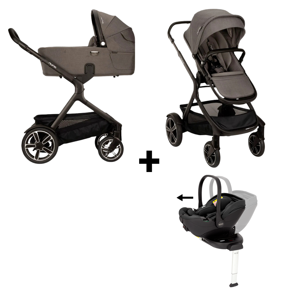 Kinderwagen Nuna De kinderwagen Demi Next van het merk Nuna is voorzien van grenzeloze mogelijkheden. De Demi Next is meer dan alleen een kinderwagen. Hij is de ideale metgezel voor het moderne gezinsleven. Een kinderwagen die met jouw gezin meegroeit en je oneindig veel mogelijkheden geeft. Next staat voor een flexibele levensstijl waarbij je in jouw eigen tempo jouw eigen weg kunt gaan en bewust jouw eigen beslissingen kunt nemen. Met de Demi Next laat je zien dat je alleen het beste voor jouw baby wilt. De reiswieg geeft jouw baby vanaf de eerste dag een heerlijke plaats om te slapen of voor de eerste avonturen buiten. De reiswieg klikt gemakkelijk op het frame. De vele ventilatie panelen zorgen voor een optimale luchtcirculatie en het droomdekentje zorgt voor onverstoorde dutjes. Doordat de reiswieg op zichzelf inklapbaar is neem je hem gemakkelijk mee op reis of berg je hem eenvoudig op. De wandelwagen gebruik je vanaf 6 maanden tot 22 kg. De Demi Next is een wandelwagen die gemakkelijk inklapt, ook met zitting. De zitting plaats je zowel voorwaarts als achterwaarts op het frame. De rugleuning verstel je eenvoudig met maar één hand in wel 4 verschillende posities. De rugleuning kan ook helemaal rechtop worden gezet voor een juiste houding. Verstel ook het voetsteuntje naar de behoefte van iedere groeifase. Het verwijderbare inlegje is gemaakt van comfortabel Merino wol. Daarnaast is de vier seizoenen zitting perfect om jouw kindje warm te houden in de winter en koel in de zomer. De waterafstotende UPF50+ zonnekap beschermt je kindje tegen de weerselementen. Zit het weer echt niet mee? De kinderwagen wordt geleverd inclusief regenhoes. De achterrem van de kinderwagen isbedienbaar met één voet en schoenvriendelijk. De verstelbare vering op het achteras zorgt voor een comfortabel rit op ieder terrein. De voorwielen zijn extra breed en kunnen worden vastgezet. Dit zorgt er voor dat je je makkelijk beweegt met de kinderwagen. De banden zijn robuust en gevuld met schuim. De spatborden en ingebouwde wieldeksels beschermen tegen vuil en de vingers van je kindje. Het 5-punts veiligheidsharnas van de zitting is voorzien van een magnetische sluiting. Het harnas groeit mee met je kindje en is ook te gebruiken als 3-puntsgordel. Al deze pluspunten maken de Nuna DemiNext uniek en geeft zijn grenzeloze mogelijkheden weer. Autostoel Joy Pro 360 De Novi Baby® Joy Pro 360 is een luxe I-Size autostoel groep 0+ en is al geschikt vanaf de geboorte tot 87 cm. De autostoel biedt je kleintje optimale veiligheid dankzij het verkleinkussen en de schouderpads. Zodra jekleintje groter wordt (vanaf 75 cm), kun je het verkleinkussen verwijderen. De stoel beschikt over optimale ventilatie dankzij de ademende stof en de lucht doorlatende kuip. Zo raakt je kindje niet oververhit. De autostoel is voorzien van een 3-puntsveiligheidsgordel, zodat je kindje altijd veiligin de autostoel zit. Je kunt de autostoel bevestigen de met de 360° draaibare isofixbase in de auto door middel van isofixhaken en met een 3-punts autogordel. Ideaal voor als je de stoel in snel en gemakkelijk in een andere auto wilt installeren. Ook is de base voorzien van een steunpoot. Deze kunje verstellen tot de juiste hoogte van je auto voor optimale stabiliteit en veiligheid. Dankzij het Glide systeem van de autostoel wordt het voor jou als ouder nog makkelijker om jouw kindje uit de auto te halen. Je kunt namelijk moeiteloos de autostoel draaien en naar je toe schuiven zodat het stoeltje net buiten de auto komt. Oftewel: geen worstelingen, rugpijn of hoofdstoten meer! Dankzij de 360° draaibare zitting kun jij je kindje gemakkelijk in de stoel bevestigen, en vervolgens tegen de rijrichting in draaien. Ligt je kindje in de zon? De Joy Pro is voorzien van een uitschuifbare zonnekap. Eigenschappen Merk: Nuna Te gebruiken vanaf geboorte tot 22kg Reiswieg is los inklapbaar voor gemakkelijk opbergen/reizen Reiswieg met ventilatie panelen Kinderwagen makkelijk inklapbaar, ook met zitting Rugleuning verstelbaar in 4 standen Rugleuning verstelbaar met 1 hand Zittingkan zowel voorwaarts als achterwaarts Eenvoudige schoenvriendelijke rem Verstelbare en dubbele vering op achteras Brede voorwielen met zwenk of vaste stand Draaibare en verwijderbare voorbeugel Voetsteun verstelbaar met één hand Magnetische gespen Vijfpuntsgordel kan ook gebruikt worden als 3-puntsgordel Wielen met spatborden en wieldeksels Inlegje van Merino wol Waterafstotende UPF50+ zonnekap Geïntegreerd droomdekentje in zonnekap Vier seizoenen zitting Grote boodschappenmand met draagcapaciteit van 10kg Inclusief regenhoes Te gebruiken met de Demi Next 2de zitje of het Demi Next meerijdplankje (exclusief) Autostoel Merk: Novi Baby® Geschikt vanaf de geboorte tot 87 cm Autostoel inclusief isofixbase 360° draaibaar Autostoel is voorzien van een Glide systeem waardoor je het stoeltje naar je toe kunt schuiven Voorzien van 3-puntsveiligheidsgordel en uitschuifbare zonnekap Inclusief uitneembaar verkleinkussentje en schouderpads Bevestiging met isofixbase haken en 3-punts autogordel Bekleding wasbaar op 30 graden Voldoet aan de strengste I-Size veiligheidsnorm