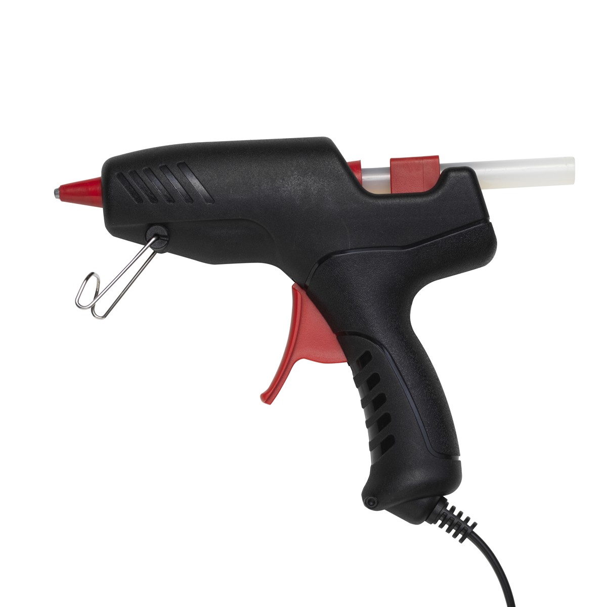 Dit iets grotere en krachtigere lijmpistool is geschikt voor zowel grote handen als grote projecten. Of je nu gaat schilderen, timmeren, naaien of repareren, het lijmpistool wordt al snel een onmisbaar en creatief hulpmiddel. De sterke lijm werkt goed op hout, kurk, karton, papier, plastic, keramiek, steen, metaal en leer. Het gereedschap is ergonomisch ontworpen en eenvoudig om mee te werken. Aan de voorkant zit een metalen standaardje dat kan worden uitgeklapt als je het lijmpistool rechtop wil houden tijdens het werken of veilig wil ophangen na gebruik. Hoe werk je met een lijmpistool? Leg een kladblaadje klaar, steek een lijmstick/-patroon via de achterkant in het pistool en steek de stekker in het stopcontact. Het pistool zal nu beginnen met opwarmen, dit duurt ongeveer 5 minuten. Zet het pistool tijden het wachten en tussen het lijmen door met de punt naar beneden, met behulp van de twee pootjes, op het kladblaadje. Eventuele druppels lijm vallen zo op het blaadje en niet op je