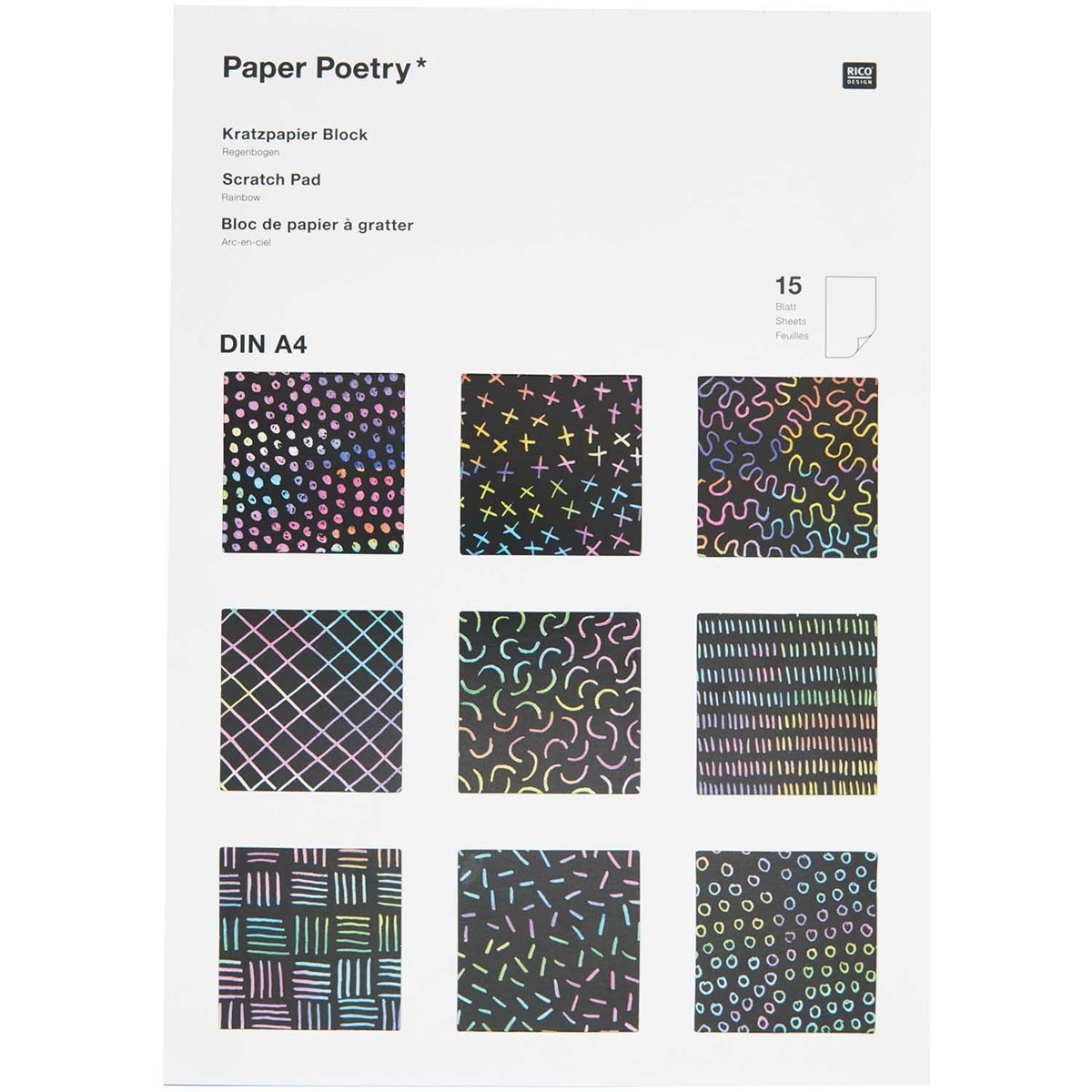 Achter het zwarte oppervlak van het kraspapier zit een kleurrijk regenboogpatroon dat wacht om te worden weggekrast. Het motiefblok biedt geweldige sjablonen die eenvoudig langs de lijn kunnen worden weggekrast. Het A4 blok bevat 10 vellen en wordt geleverd zonder kraspen.