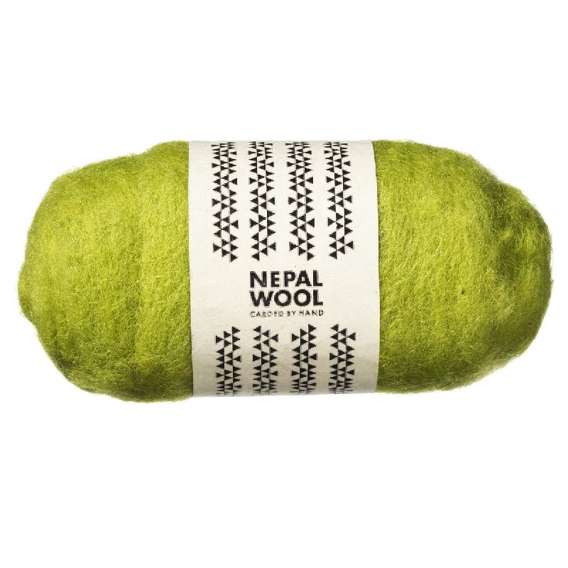 Nepal wool van 100% lamswol, gekamd met de hand. Uitstekend voor weven en vilten. Gewicht: 50 gram. Lime.