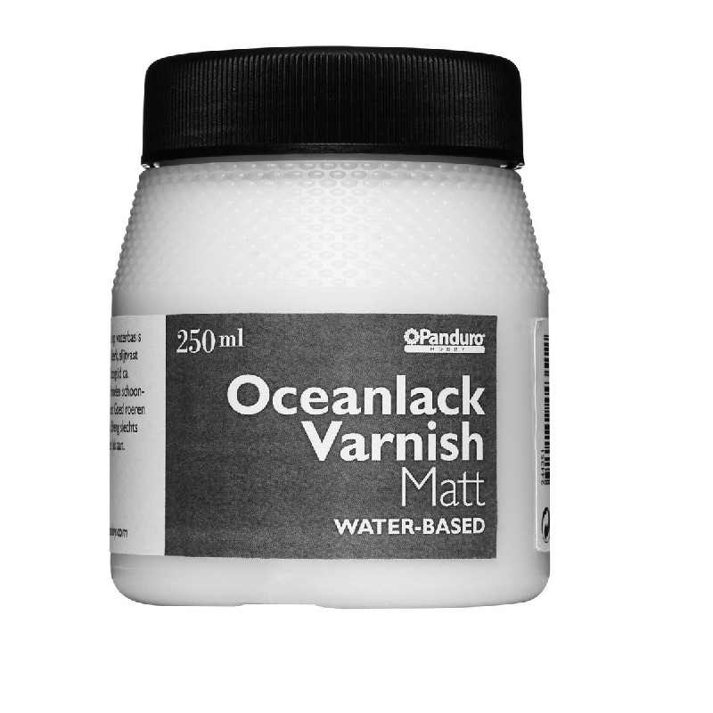 Oceanlack is een vernis op waterbasis, zonder schadelijke stoffen. Het zorgt voor een zeer duurzame afwerking op verschillende oppervlakken waaronder hout, karton en gips. Het belangrijkste doel is het beschermen van houten meubelen en gebruiksvoorwerpen. De vernis is melkachtig wit als het nog vloeibaar is, maar droogt in ongeveer 15-30 minuten op tot een transparante beschermlaag. Roeren voor gebruik en kwasten reinigen met water (zolang de vernis nog nat is). Geschikt voor gebruik binnenshuis.