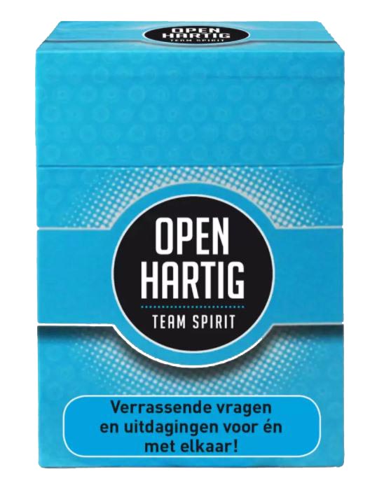 Het spel Openhartig Team Spirit bestaat uit 102 kaarten.Je kan het spel Team Spirit Openhartig binnen elke groep, klas, club of ieder bedrijf spelen. Je neemt om de beurt een kaart met een vraag/opdracht. Kunnen jullie gezamenlijk dat ene doel bereiken? Versterk de band, durf op elkaar te vertrouwen, voel de teamspirit en laat je verrassen!