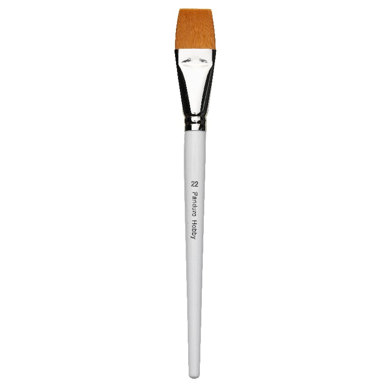 Platte hobbypenseel met synthetische haren, nr. 22 (22 mm). Houten schacht van 14 cm.