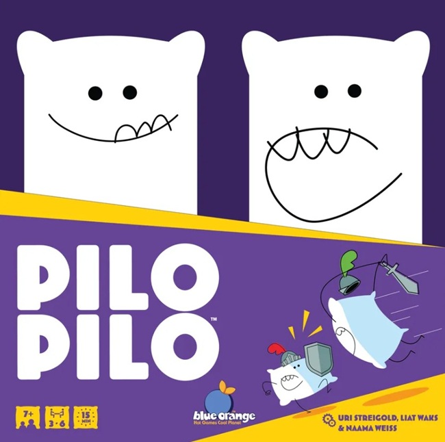 KussengevechtIn Pilo Pilo draait alles om snelheid, opletten en slim reageren. In dit knotsgekke spel vol actie probeer je als eerste jouw kaarten kwijt te spelen.Hoe werkt het spel Pilo Pilo?Elke speler krijgt een stapel kaarten, en in het midden van de tafel liggen twee kussens. In je beurt draai je de bovenste kaart om en voer je razendsnel de actie uit die erop staat:Rood: Grijp een kussen en gooi het naar iemand met een groene kaart.Groen: Gebruik je kaart als schild tegen een kussenaanval.Blauw: Pak een kussen en leg je hoofd erop.Paars (de kussenkoning): Niemand mag iets doen!Doe je de juiste actie (of juist niets als dat nodig is), dan mag je je kaart afleggen. Maak je een fout? Dan moet je je kaart onderaan je stapel schuiven.De eerste speler die al zijn kaarten kwijt is, wint het spel!Waarom wil je Pilo Pilo spelen?Uniek en hilarisch kussengevecht in kaartvorm.Perfect voor snelle, energieke spelmomenten.Eenvoudige regels, geschikt voor kinderen én volwassenen.Grijp dat kussen, wees sneller dan je tegenstanders en word de koning van het kussengevecht !
