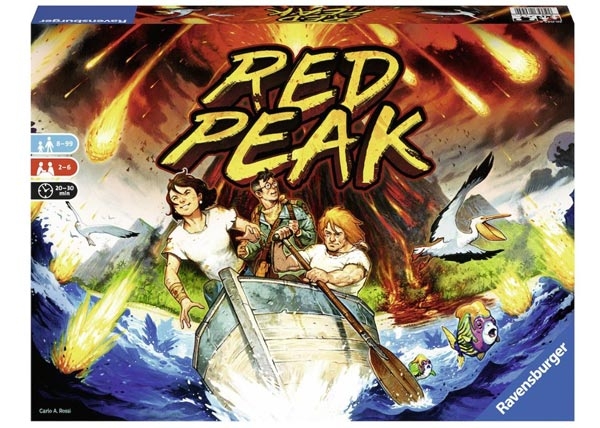In het spel Red Peak zijn de spelers een groep avonturiers die een vulkaaneiland verkennen. Net wanneer ze op het eiland zijn, begint de vulkaan Red Peak uit te barsten. Iedereen moet zo snel mogelijk door de dichtbegroeide jungle terug naar het strand. Slagen jullie erin om de groep avonturiers in de boot te krijgen voordat de lava jullie te pakken krijgt? Red Peak is een spannend coöperatief spel van Ravensburger voor 2 tot 6 spelers.Inhoud bordspel Red Peak: – een dubbelzijdig junglebord, – 75 schijfjes en kaartjes, – 55 speelkaarten, – een zandloper, – een tent, – een avonturier pion, – spelregels.