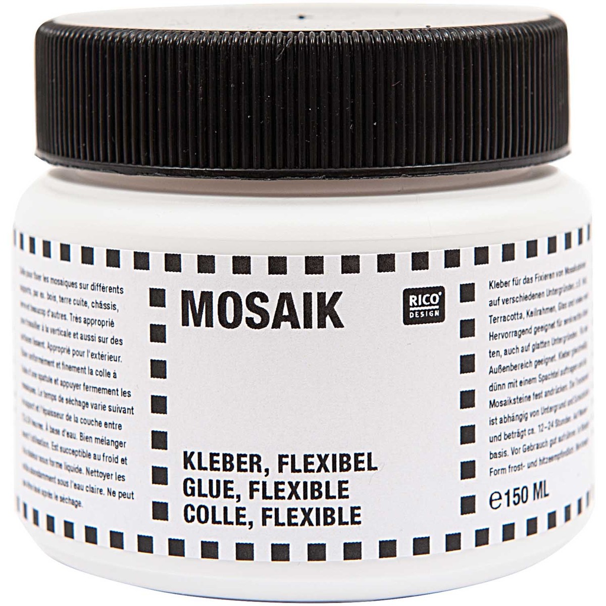 Lijm voor het bevestigen van mozaïekstenen op verschillende ondergronden, bijv. hout, terracotta, fotolijsten, glas en nog veel meer. Uitstekend geschikt voor verticaal werk, ook op gladde oppervlakken. Specificaties en gebruik: * Geschikt voor buitengebruik * Met een spatel gelijkmatig een dunne laag lijm aanbrengen en de mozaïekstenen stevig aandrukken * Droogtijd is afhankelijk van de ondergrond en laagdikte en bedraagt ca. 12-24 uur * Watergedragen * Goed roeren voor gebruik * In vloeibare vorm vorst- en hittegevoelig * Gereedschap grondig met water reinigen * Na droging niet uitwasbaar Inhoud: 150 ml. Let op: Buiten bereik van kinderen bewaren!