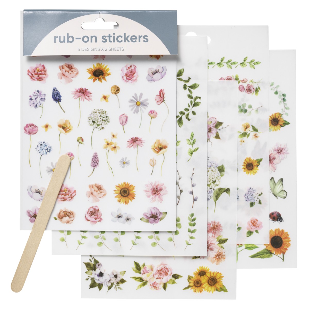 Rub-on stickers – 10 vellen – bloemen/vlinders