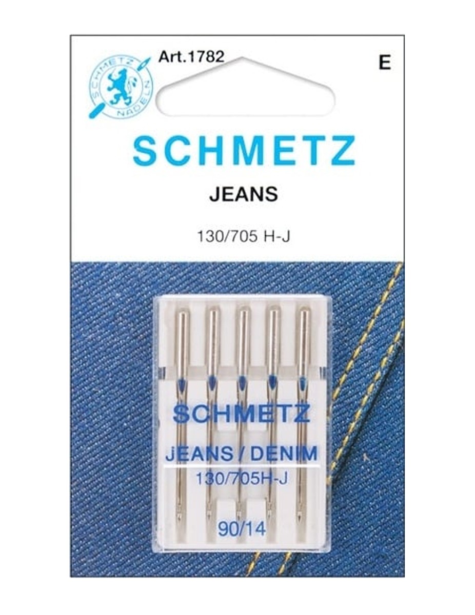 Geschikt voor jeans, denim, tafelzeil, rubber, plasticfolie en kunstleder. De jeansnaald heeft een extra scherpe punt, dikte 90.
