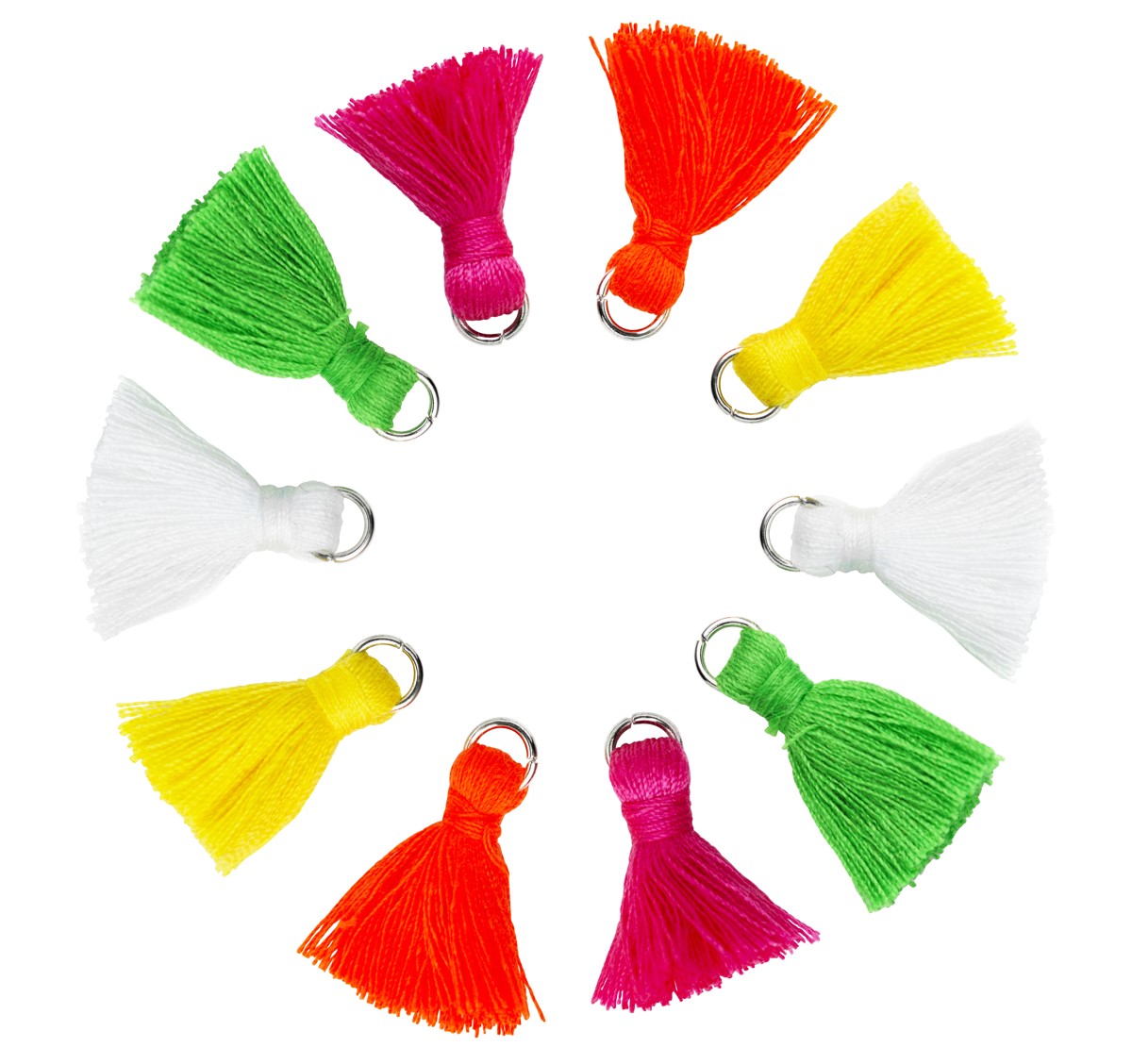 Panduro Jewellery, kleine kwastjes voor sieraden in diverse neon kleuren. Pak van 10 stuks. Lengte: 20 mm.