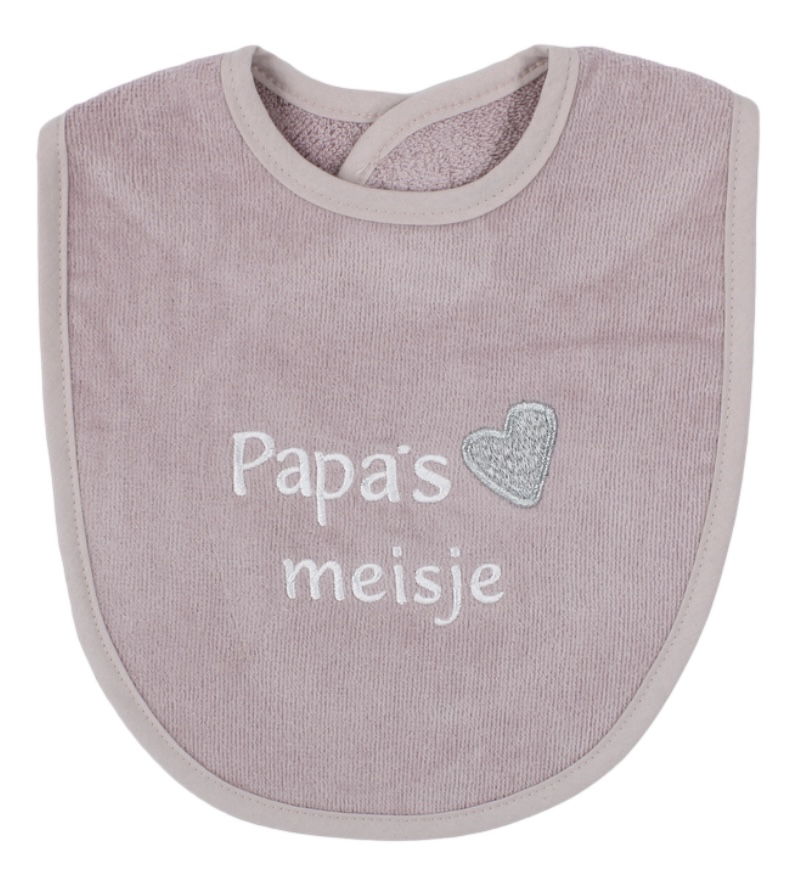 Slabber Petit VillainDeze leuke slabber is van het merk Petit Villain. De slabber is te sluiten met een klittenband sluiting en is gemaakt van 100% katoen waardoor hij heerlijk zacht en comfortabel aan voelt. Op de slabber staat de tekst:’Papa’s Meisje’. EigenschappenMerk: Petit VillianMateriaal: 100% KatoenMet klittenband-sluiting Wasbaar op 40°C graden