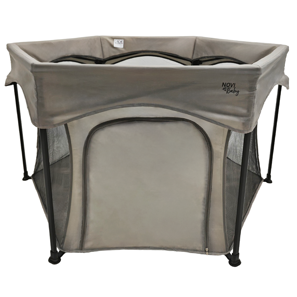 Speelbox Novi at Home® KellyOp zoek naar een box die je wél makkelijk mee kunt nemen? De zeshoekige speelbox Kelly van Novi at Home is ideaal hiervoor. Deze speelbox kan je namelijk zo inklappen en meenemen, handig voor op vakantie, bij de oppas of gewoon thuis of in de tuin als er niet zo veel ruimte is. Door het handige open te ritsen vak aan de voorkant kan je kindje makkelijk zelf de speelbox in kruipen. De zijkanten van de box bestaan volledig uit mesh luchtdoorlatend materiaal, extra veilig voor je kindje. De pootjes hebben anti-slip materiaal, zo blijft de box ook zeker stevig staan. De box kan gebruikt worden om in te spelen of in te liggen, maar is niet geschikt om in te slapen. EigenschappenMerk: Novi at Home®Blijft stevig op de grond staanMet handige opening met ritsMakkelijk in te klappenAdemende gaaswandenZeshoekige vormInclusief draagtas