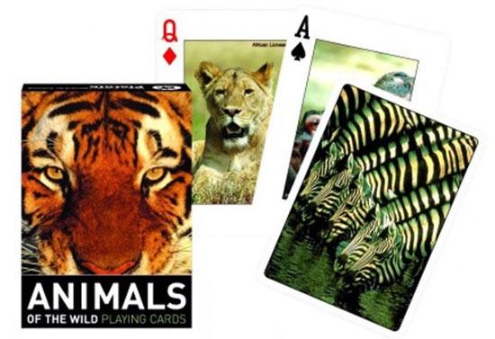 Dit zijn speelkaarten met prachtige afbeeldingen van dieren. De kaarten hebben een pokerformaat: 63 x 88 mm.Het betreft een standaard set speelkaarten.De koning wordt weergegeven door een K (King).De dame wordt weergegeven door een Q (Queen).De boer wordt weergegeven door een J (Jack).De 1 wordt weergegeven door een A (Ace).