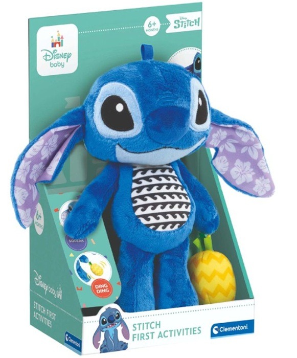 Dit Stitch knuffeltje heeft felle kleuren en een aantrekkelijke opdruk om de interesse en het zicht van baby’s te stimuleren. Daarnaast zijn er speciale activiteiten zoals de ananas rammelaar en knisperende elementen in de oren. Op die manier stimuleert de Stitch knuffel de zintuiglijke vaardigheden van het kind.Geschikt voor baby’s vanaf 6 maanden.
