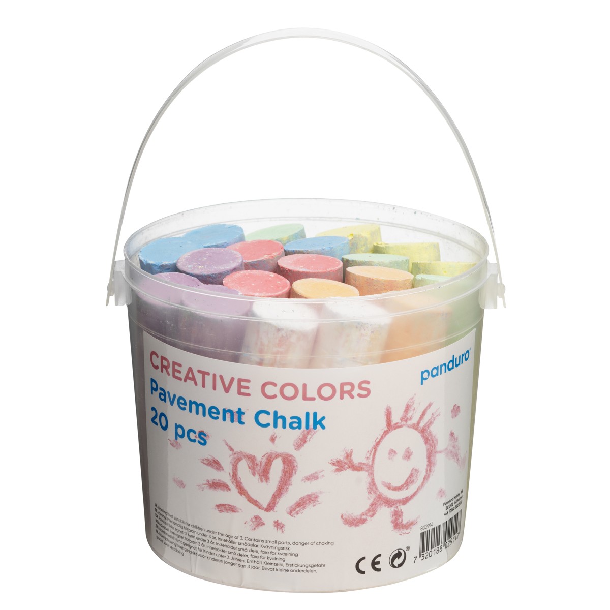 Stoepkrijt, iedereen houdt van straatkunst! Makkelijk in gebruik en je kunst verdwijnt met een goeie regenbui of een beetje poetsen vanzelf. Zo kun jij eindeloos vaak tekenen en houd je ondertussen de straten schoon. Win/win! De stoepkrijtjes zijn 10,5 cm lang en hebben een diameter van 2,4 cm. De pot bevat 20 sticks (6×3 kleuren + 2 wit). Geschikt voor kinderen en volwassenen vanaf 4 jaar.