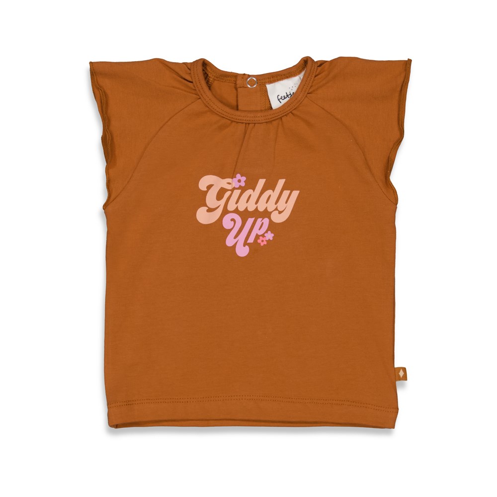 T-shirt FeetjeDit schattige t-shirt is van het merk Feetje. Het shirt is voorzien van korte mouwtjes en heeft op de rug diverse drukknoopjes. Hierdoor wordt het aan- en uitkleden nog makkelijker. Feetje S2319 51700788 MT68 T-shirt – Howdy Honey Bruin