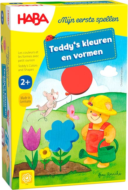 Het spel Teddy’s kleuren en vormen van HABA is een eerste verzameling legspellen voor kleine teddyberen vanaf 2 jaar.Als kinderen kennis maken met de liefdevol geïllustreerde wereld van Teddy, leren ze spelenderwijs vormen en kleuren kennen. Twee coöperatieve regelspellen trachten dit vermogen te versterken. Daarnaast bevordert het vrij puzzelen ook de fijne motoriek en het herkennen van details.