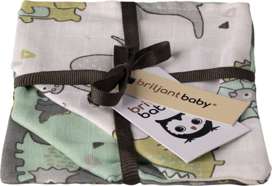 Washandjes Briljant Baby Hydrofiel Dino 3st