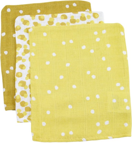Washandjes Briljant Baby Hydrofiel Spots Oker 3st