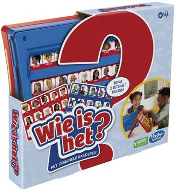 Dit is een vernieuwde versie van het spel Wie is het.Wie is het is een tweepersoonsspel waarbij je op zoek gaat naar het geheime figuur van jouw tegenstander. Stel vragen, zoek eigenschappen en ontdek de geheime figuur. Raad klassieke of heldenfiguren.Ā Om beurten stel je een vraag aan elkaar zoals: Is het een jongen? Draagt hij een bril? Heeft hij iets op zijn hoofd staan? De andere mag alleen antwoorden met “ja” of “nee”. Elimineer de personages die niet aan de criteria voldoen. Wie het snelt het geheime personage van de tegenstander vindt, wint het spel.Wie is hetĀ is een leuk gezelschapsspel waarbij je gericht vragen leert stellen.Ā Het spel bevat 2 frames, 2 dubbelzijdige vellen met figuren en spelregels