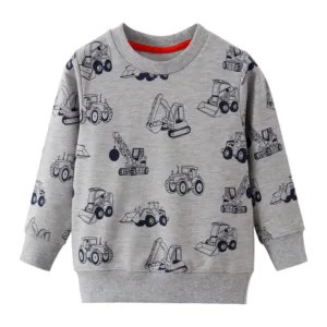 Mini Fashion™ – Geweldige Printen – Sweater Grijs – Graafmachine / 140 (7 jaar) | Educatief Speelgoed