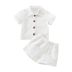 Mini Fashion™ – Katoen Linnen Zomerset Jongens Wit / 80 (6-12 maanden) | Educatief Speelgoed