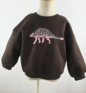 Mini Fashion™ – Leuke Dinosaurus Print – Dino Sweater Bruin / 120 (5 jaar) | Educatief Speelgoed